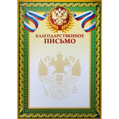 Благодарность А4 230 г/кв.м 10 штук в упаковке (коричневая рамка, герб, триколор, А4-41/Б)