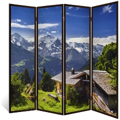 Ширма перегородка ДЕКОР ДЕПО для комнаты деревянная «Геопарад» двухсторонняя с картинкой (мода и красота) 4 створки кремовый дуб 176х185 см 14 кг
