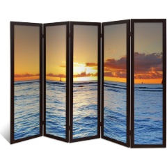 Ширма перегородка ДЕКОР ДЕПО для комнаты деревянная «Лебединое озеро» двухсторонняя с картинкой (мода и красота) 3 створки кремовый дуб 176х140 см 11 кг