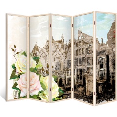 Ширма перегородка ДЕКОР ДЕПО для комнаты деревянная “Открытки путешественников” двухсторонняя с картинкой (города) 4 створки венге 176х185 см 14 кг