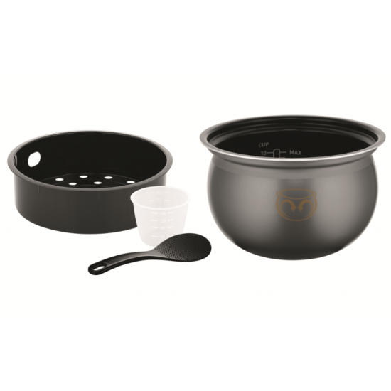 В комплект входят лопатка, паровая корзина, чаша, мерная чаша и книга рецептов. Съемные детали, включая чашу, можно мыть в посудомоечной машине.